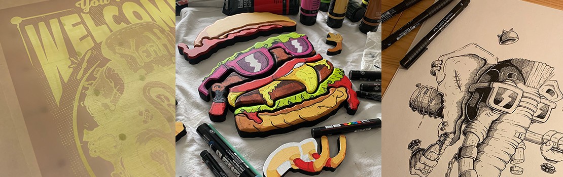 Entre le Studio, où je célèbre la pop culture à travers des visuels accessibles et punchy, et l’Atelier, où la main et la matière prennent le relais du digital, ma démarche reste la même : explorer cette nostalgie joyeuse pour créer des images qui font du bien.
